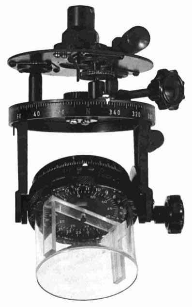Eine andere Halterung dieses Instrumentes mit unterer Befestigung und Schraubklemme (linkes Bild) wurde in Fahrzeugen des Afrika-Korps von Generalfeldmarschall Rommel benutzt. Die Position der Sonne wurde als Referenz genutzt. Der Gang der Sonne wurde dadurch berücksichtigt, dass diese Referenz kontinuierlich durch einen eingebauten Uhrwerk-Mechanismus korrigiert wurde. Nach der Einstellung der geographischen Koordinaten sowie der genauen Zeit zeigte das Instrument die wahre Richtung an. |