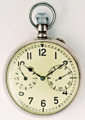 With the end of the war in 1945, the still-existing stocks of timepieces at Glashuette, together with part of the production lines and the testing equipment of Gesundbrunnen near Dresden, were sent to the Soviet Union as 'repair' payments. Tutima pilot chronographs, e.g., were brought in transport boxes to the Soviet headquarters in Dresden. Until August 8, 1945, all production lines of the UFAG and the UROFA (initials of manufacturing companies in Glashuette) movements were dismounted and on the way to Moscow. Recently, I saw a Tutima chronograph in bad condition, which was marked on the dial with the cyrillic letters 'First Moscow Watch Factory Kirowa'. The Russian ships chronometers, 'Kirowa' or 'Poljot', are copies of the 'Lange' chronometer of Glashuette. In Glashfuette the navigation watches cal. 48 were still produced until 1977 in the pocket version, partly with the dial and central second hand of the navigation wristwatch of the air force. The ship chronometers were further developed to the cal. 100 by the 'Glashuetter Uhren-Betriebe' (GUB), which became a 'peoples owned company'. The GUB cal. 100 was used by the 'Nationale Volks-Marine' and in the Warsaw pact navies. The movement of the Tutima chronograph was redesigned in a smaller size, otherwise they had to import parts from Switzerland. The "Kasernierte Volks-Polizei" (KVP), the predecessor of the Nationale Volks Armee (NVA) or the National Peoples Army of East Germany, before 1955, used Glashuette wristwatches or donated them as a gift of honor to their people. I found a GUB wristwatch cal. 60 with the signature on the back: 'Fuer gute Leistungen Chef der KVP' (For good performance, the chief of the KVP). Under the Russian military government most private companies were taken from their owners and made into 'peoples owned organizations'. So all famous horological manufacturing companies of the little town of Glashuette, such as Lange, Kurtz, Assmann, Muehle, UFAG, UROFA and many other small workshops were forced to join the 'Glashuetter Uhren-Betriebe VEB'. (VEB is Volkseigener Betrieb.) Most of the owners went to Western Germany and some founded new factories like Kurtz or Tutima or Lange. Today some famous names have made a new beginning or are still in business as Lange & Soehne (owned today by VDO parent company of International Watch Company, hereafter IWC, and Jaeger LeCoultre as part of the Mannesmann Corporation, a large West German steel and machinery company), Nomos, and GUB. Tutima near Bremen is still supplying the Bundes-Luftwaffe, or Federal Air Force, with pilot chronographs. There were two Hanhart chronographs of World War II that were used by the KVP (Mdl) and later the NVA. The second was used for spare parts and is not yet complete. I got them from the officer of the NVA who used them on duty. There was no policy in the NVA for the supply of watches for official use. They gave some orders to the industry, e.g., the ship chronometer cal. 100 and the navigation pocket watch cal. 48 but these constructions are of pre-war origin. These and some new developments were solely delivered to the forces and not sold to the private sector. On the other hand, the military staff did buy civilian watches on demand, but these did not have a military look like the redesigned chronograph, which mostly was gold-plated and also likely to be decorated. These would not have been suited for the battlefield; they were likely to be black and with a non-shiny finish. The NVA and Navy mostly used the GUB as a supplier. The later-developed automatic wristwatch cal. 75 was used for gifts in the military and in political circles. GUB developed and produced the ship wall clock cal. 404 in the shape of a cap, first in metal, later in Bakelite, which the Soviets used in their reproduction. The clock had different dials; e.g., one had the segments for the message station. In Ruhla, Thuringia, was a subsidiary of the GUB (Kombinat Mikro-Elektronik), which developed simple mechanical wristwatches and later precision quartz movements for divers watches and for pocket watches. A friend of mine found a Ruhla wristwatch with the inscription: '30 Jahre NVA', (30th anniversary) with an armored car on the dial. It was ordered by the NVA office nr. 508 in Erfurt, for special gift-giving. In Glashuette, after the political change in 1989/90, I heard that many owners of watches with political or military engravings on the back made changes to the back, destroying some in the process. This destruction made the pieces similar. At the end of World War II many backs of navigation watches with the eagle and swastika were thrown away, so the outer back was missing on many items. At the end of the 1950s, VEB Glashuette developed about 1500 nice, high grade aircraft clocks cal. 71 for the Defence Air Force of the NVA. This clock was like that used in the projected civilian passenger aircraft of the Elbe Flugzeugwerke in Dresden. The first plane crashed in the first test, allegedly sabotaged by Soviet interests. The project was canceled but the clocks were used in Russian planes like the Iljushin 14 and the MIG 17 of the NVA. But most Russian aircraft kept their heavier Russian instrument clocks such as the Molnia of the Tjeljabinsk Watch Factory. The electro-mechanical cabin clock of Ruhla was first used for the B-152 passenger plane. The search for such horological items often led me into the homes of former military personnel in Eastern Germany. There were former top officers of the NVA who sold me their personal graduation watches. A highly decorated pilot major had two CUB 71 aircraft clocks for sale, which were used in the hangars for warming up the jets. In terms of the human and historical aspects of the war, these were interesting conversations. In most of these cases, I bought World War II aircraft clocks which had been taken from planes that had crashed and heard the stories told by the elderly men who had participated in the war. For the artiller